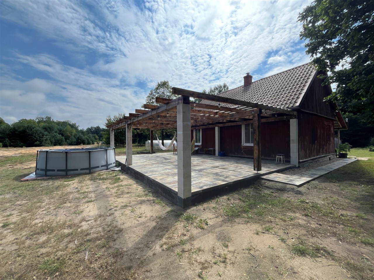 Lokalizacja: wieś Krogulec, powiat włoszczowski — malownicze, spokojne miejsce, gdzie najbliższy sąsiad mieszka kilkaset metrów dalej. Wokół tylko natura, lasy i świeże powietrze.