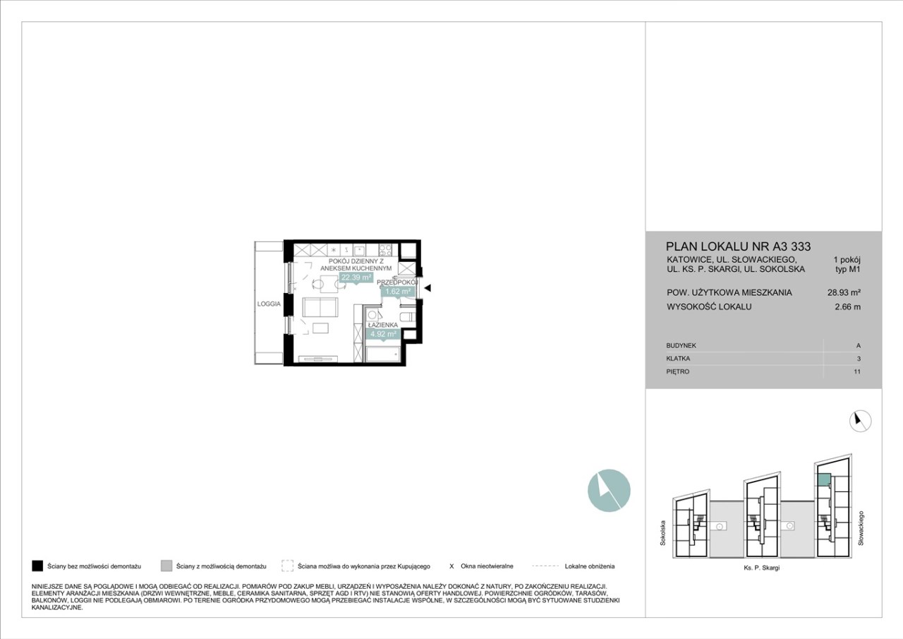 Oferowane mieszkanie znajduje się na jedenastym piętrze i ma powierzchnie ponad 75 mkw, na którą składają się: 4 pokoje, w tym salon z aneksem kuchennym, łazienka z ubikacją i przedpokój. Z pokoju dziennego jest wyjście na balkon z widokiem na miasto.