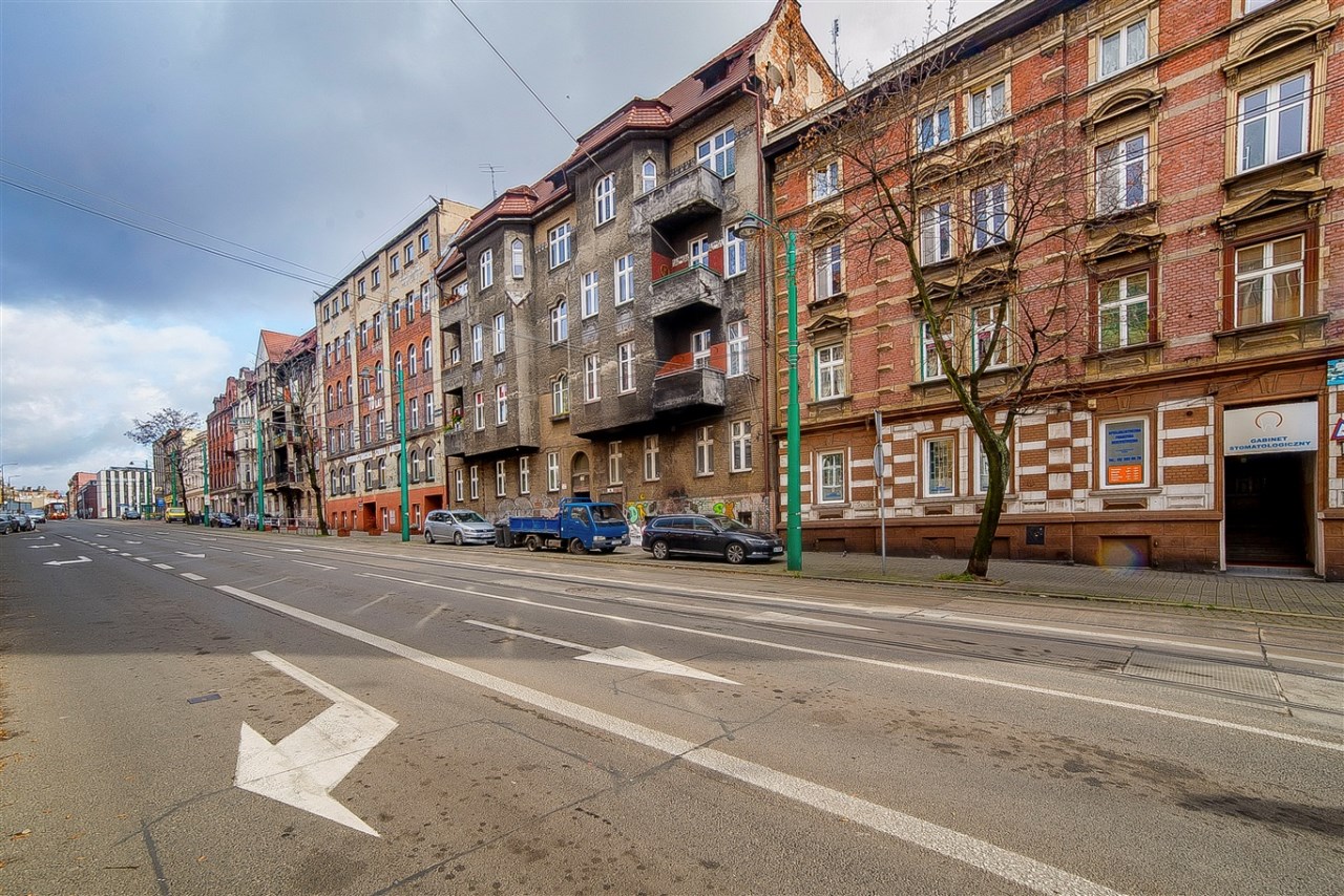 Nieruchomość znajduje się w centrum Bytomia przy ul. Jagiellońskiej 25. To miejsce szczególnie cenione przez najemców, ponieważ w zasięgu kilku minut pieszo znajdują się: